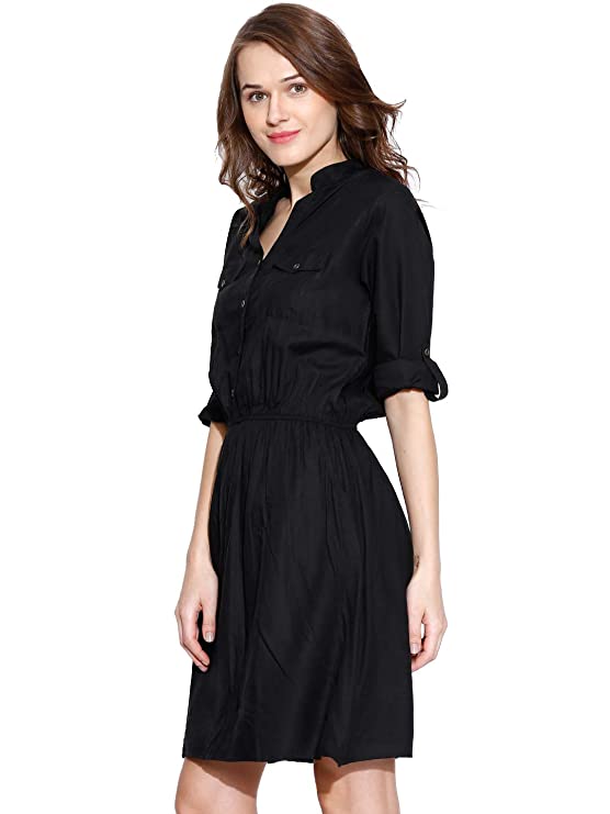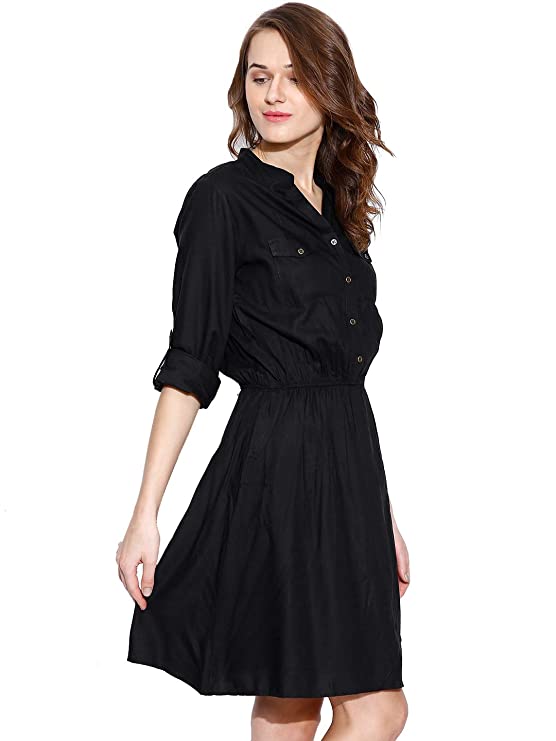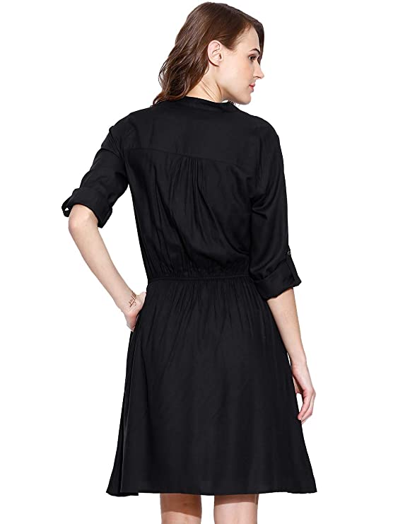Flaunt sartorial elegance wearing Black coloured dress by Amayra. Look classy and stylish in this piece and revel in the comfort of the soft rayon fabric.