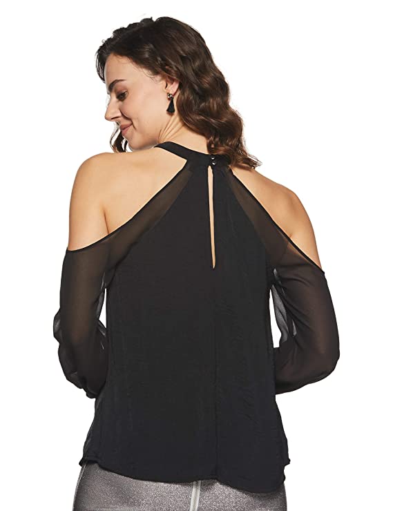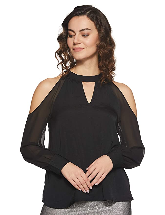 MODA Women Black Solid Long Sleeve Round Neck Top